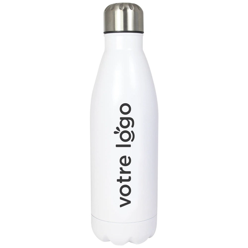 Cette bouteille publicitaire en acier inoxydable est personnalisable grâce à nos techniques de marquage en gravure laser ou en tampographie.