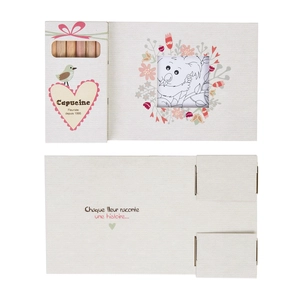 Fabriqué à partir de bois naturel et durable, le set personnalisable de mini crayons, est fourni dans une boîte en carton éco-responsable et en papier kraft, ou blanc.