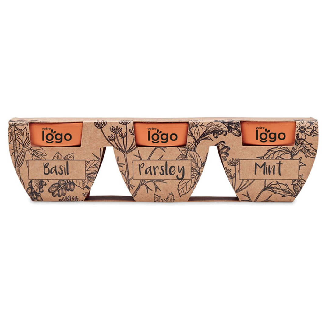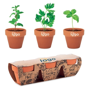 Kit de plantation 3 pots en terre cuite - menthe, persil et basilic