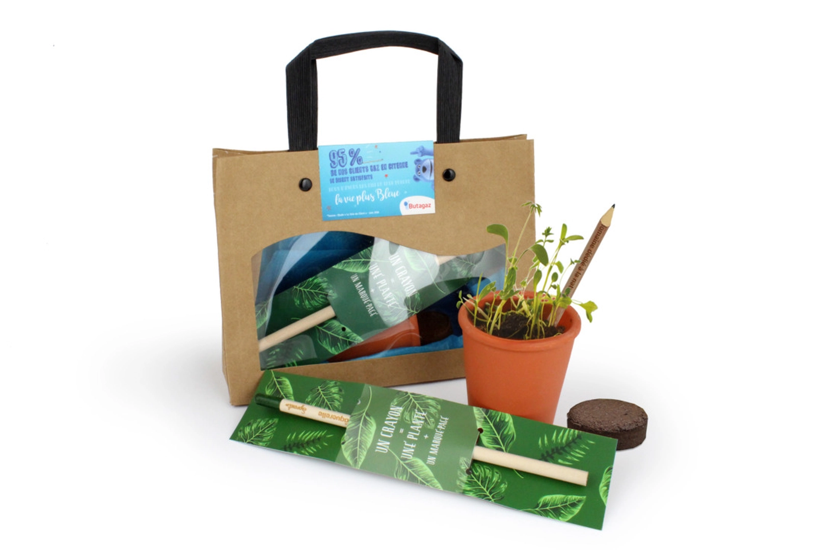 • Un crayon à graines (variété au choix) avec blister standard imprimé quadri recto/verso