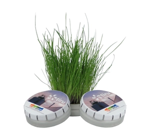 - Personnalisation par adhésif sur le couvercle ou impression quadrichromie directement sur le couvercle