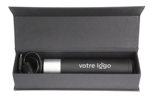 La lampe de poche est garantie deux ans et livrée dans un coffret cadeau noir avec une fermeture aimantée