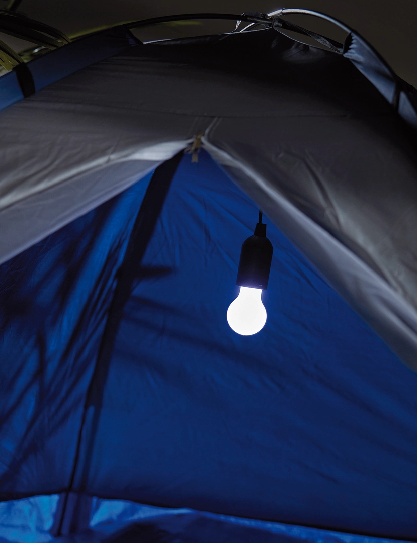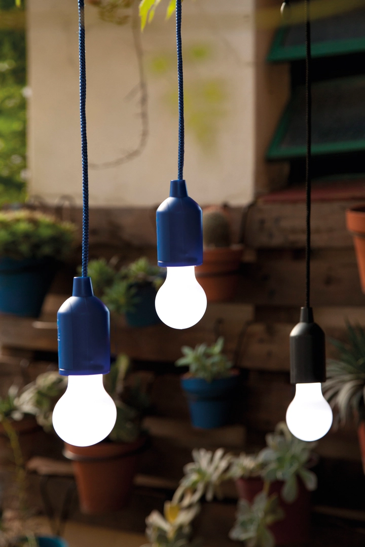 Lampe LED TIEBACK : en forme d´ampoule, lumière LED blanche (1 Watt), tirer sur la corde pour éteindre et allumer (longueur 1 m) – idéal pour le garage, les placards ou le camping.