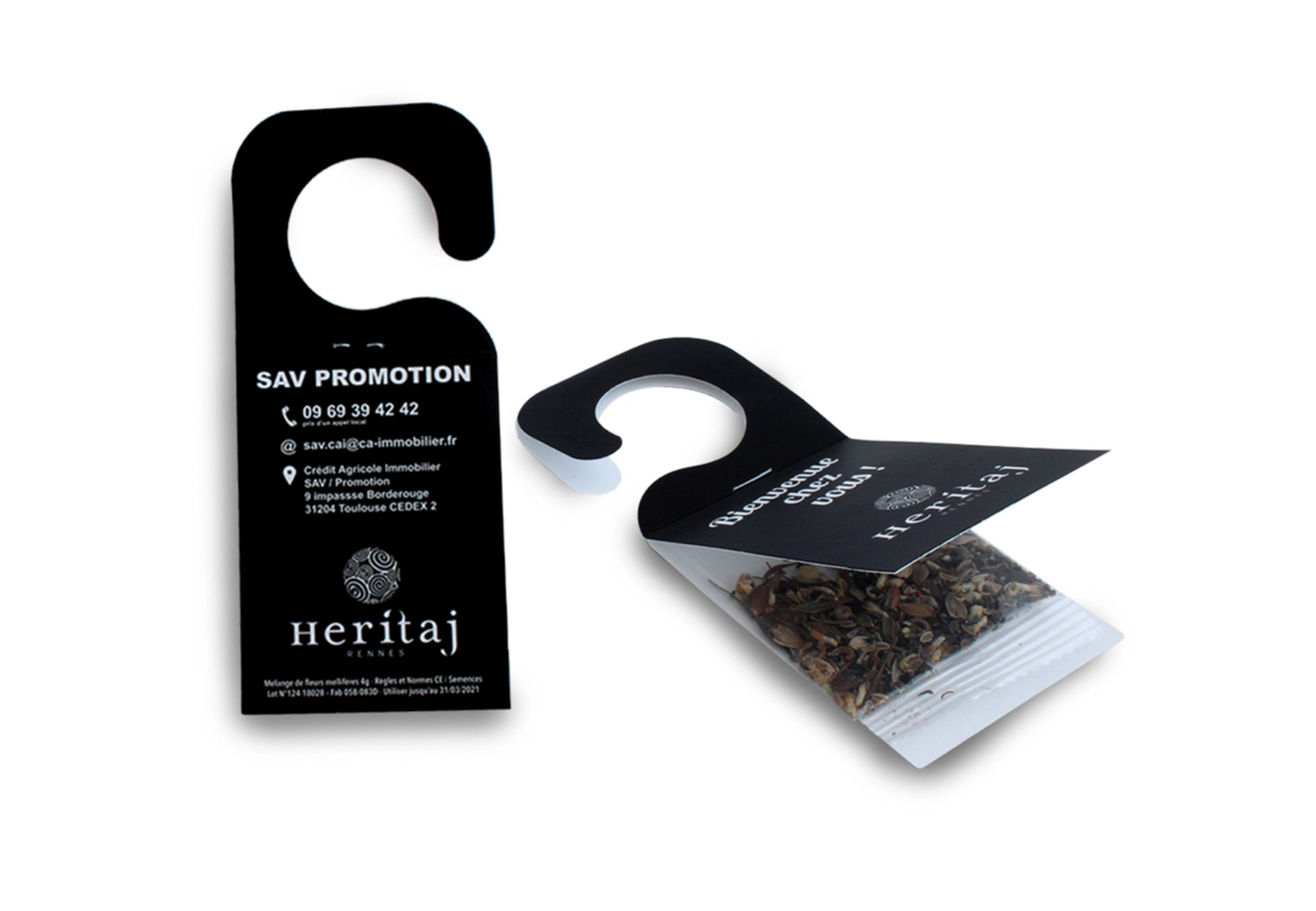 Sachet de graines au choix dans un cavalier avec découpe spécifique.