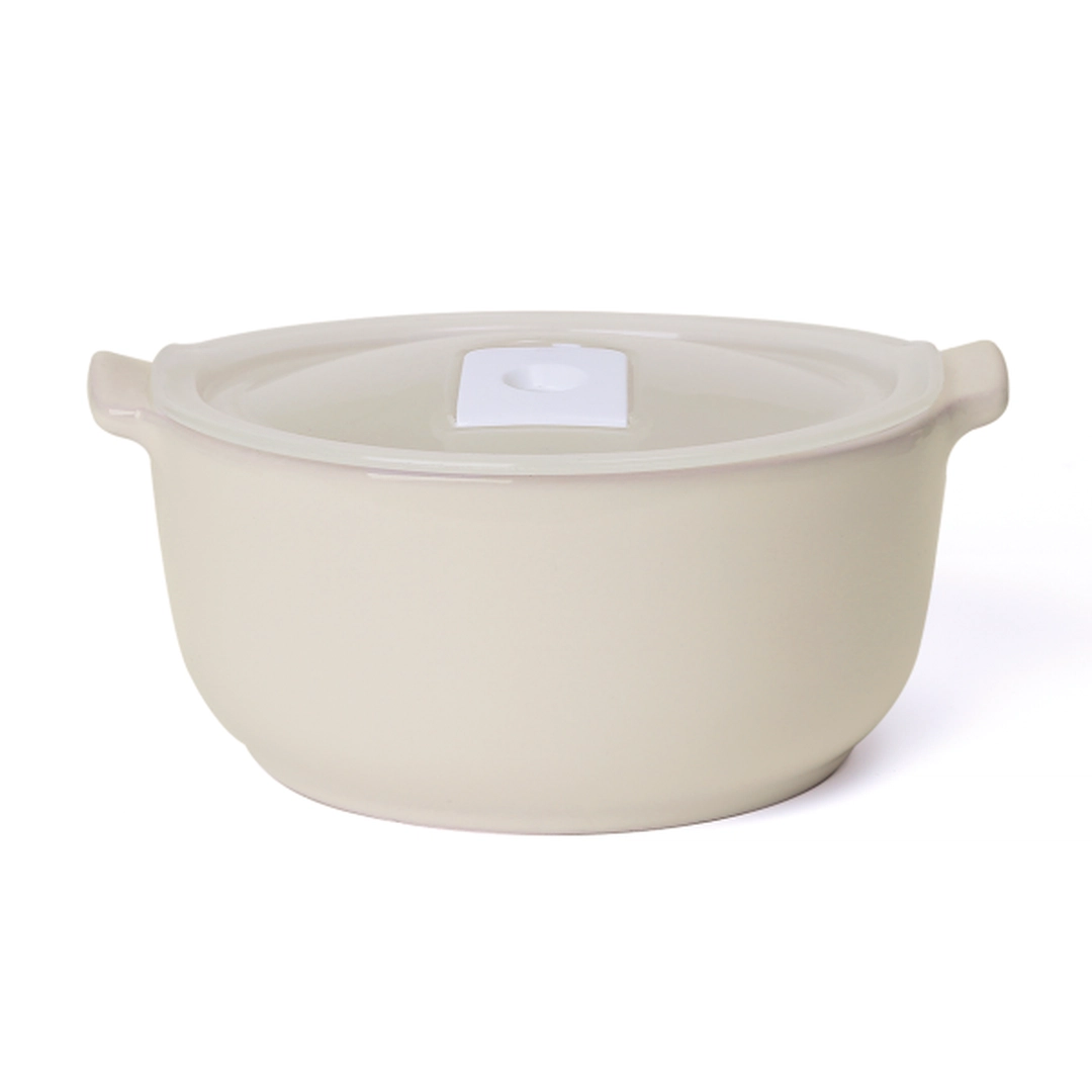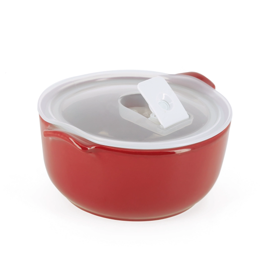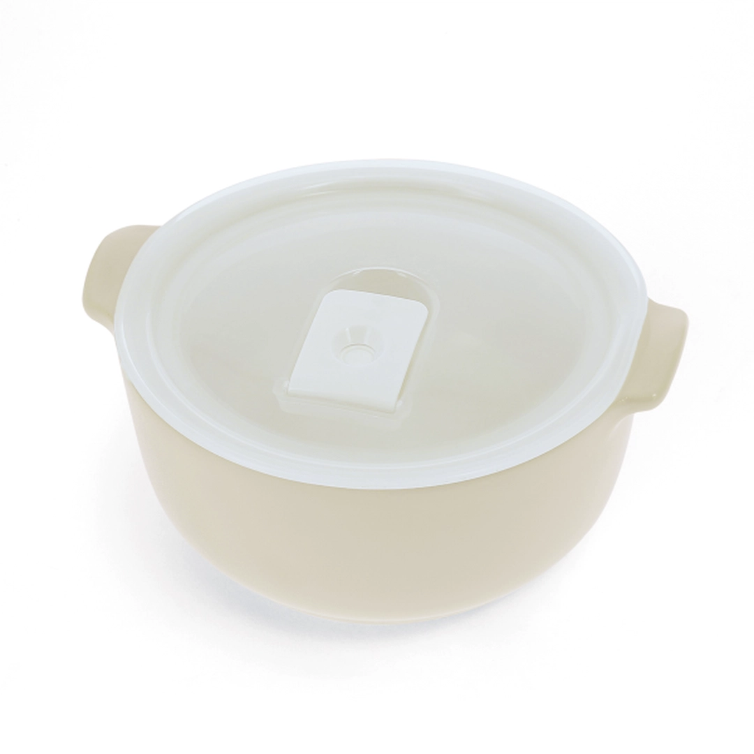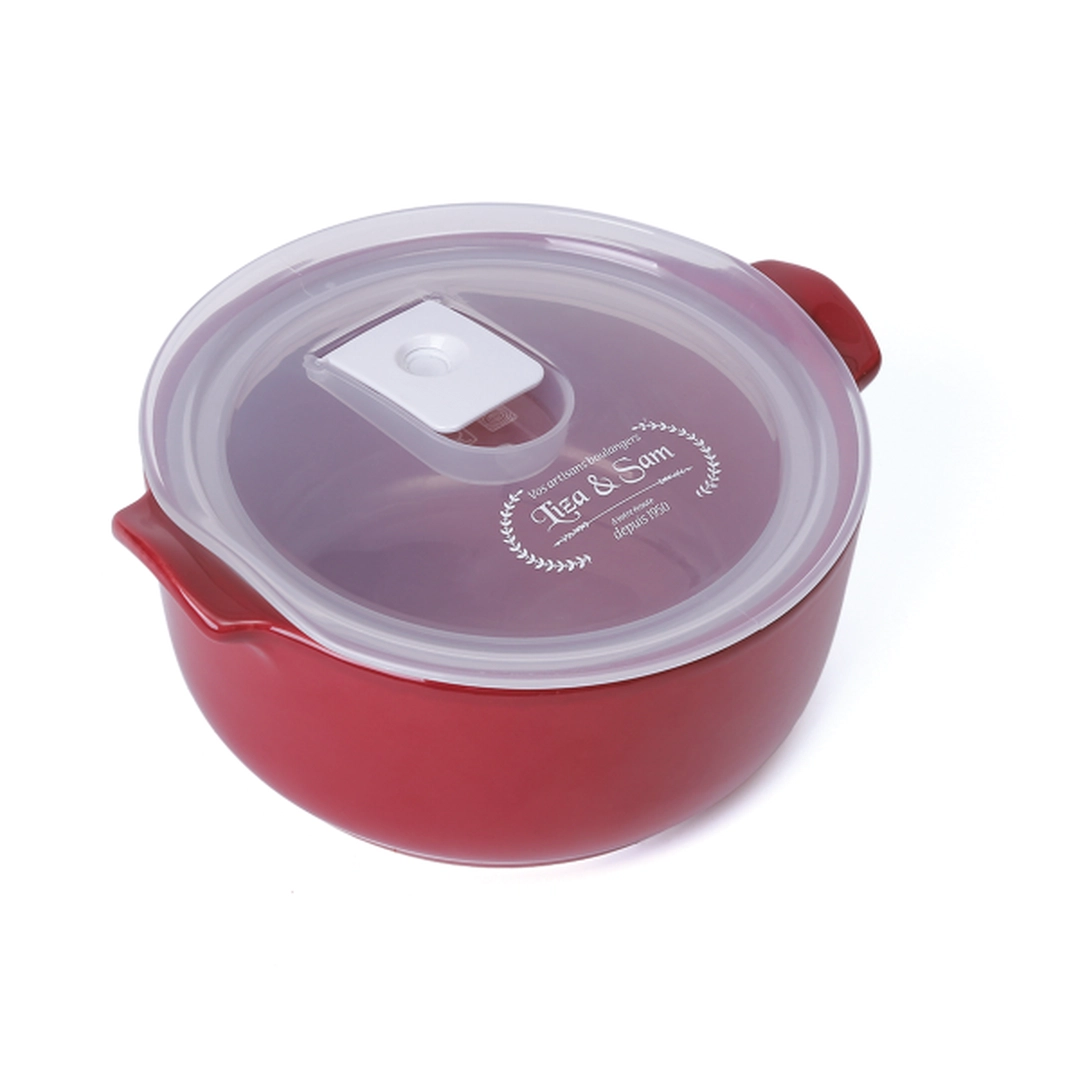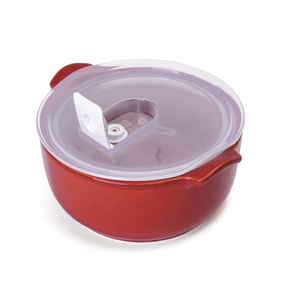 Couvercle hermétique. Cuisson au four traditionnel (sans couvercle) ou au four micro-ondes avec couvercle (valve ouverte).