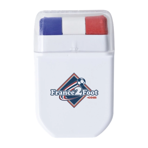 Stick maquillage tricolore bleu/blanc/rouge. Plus de 6M de maquillage. Maquillage de qualité ! Origine végétale, sans MIT, alcool ou parabens.