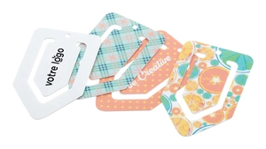 Marque-pages trombone en plastique personnalisable en quadri.