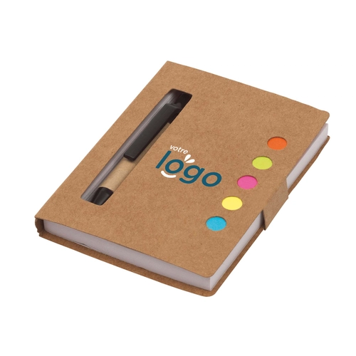 Mini bloc notes MEMO : stylo incl. (encre noire), 1 bloc notes et 5 blocs de gommettes de couleur - en matières recyclées.