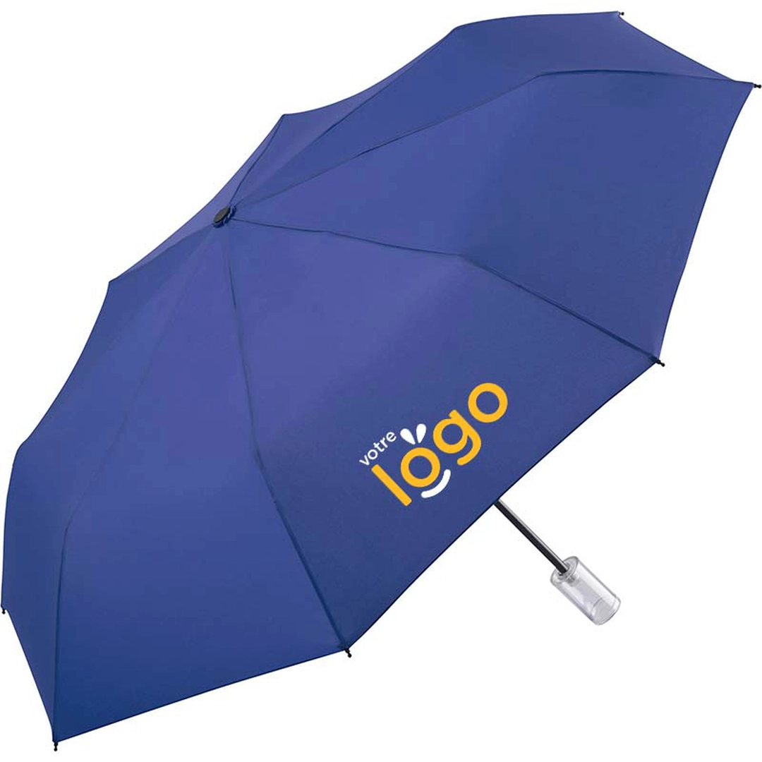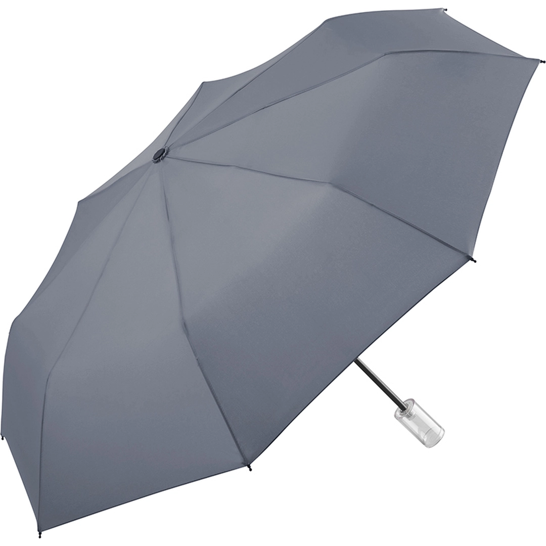 La poignée en plastique transparent du mini parapluie de poche FARE®-Fillit se dévisse pour y ranger ce que vous voulez. Laissez libre cours à votre imagination ! Ses attributs windproof et son excellent rapport qualité/prix en font l'accessoire idéal d'une campagne marketing originale.