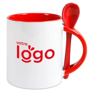 Découvrez ce tout nouveau design de la tasse céramique & sa cuillère Bicolore qui offre une surface d’impression importante.