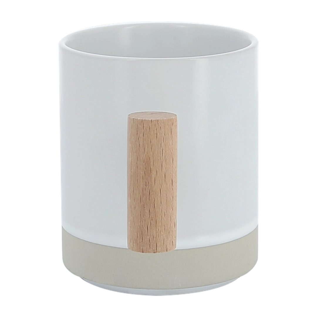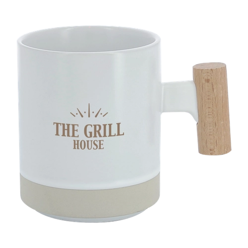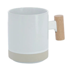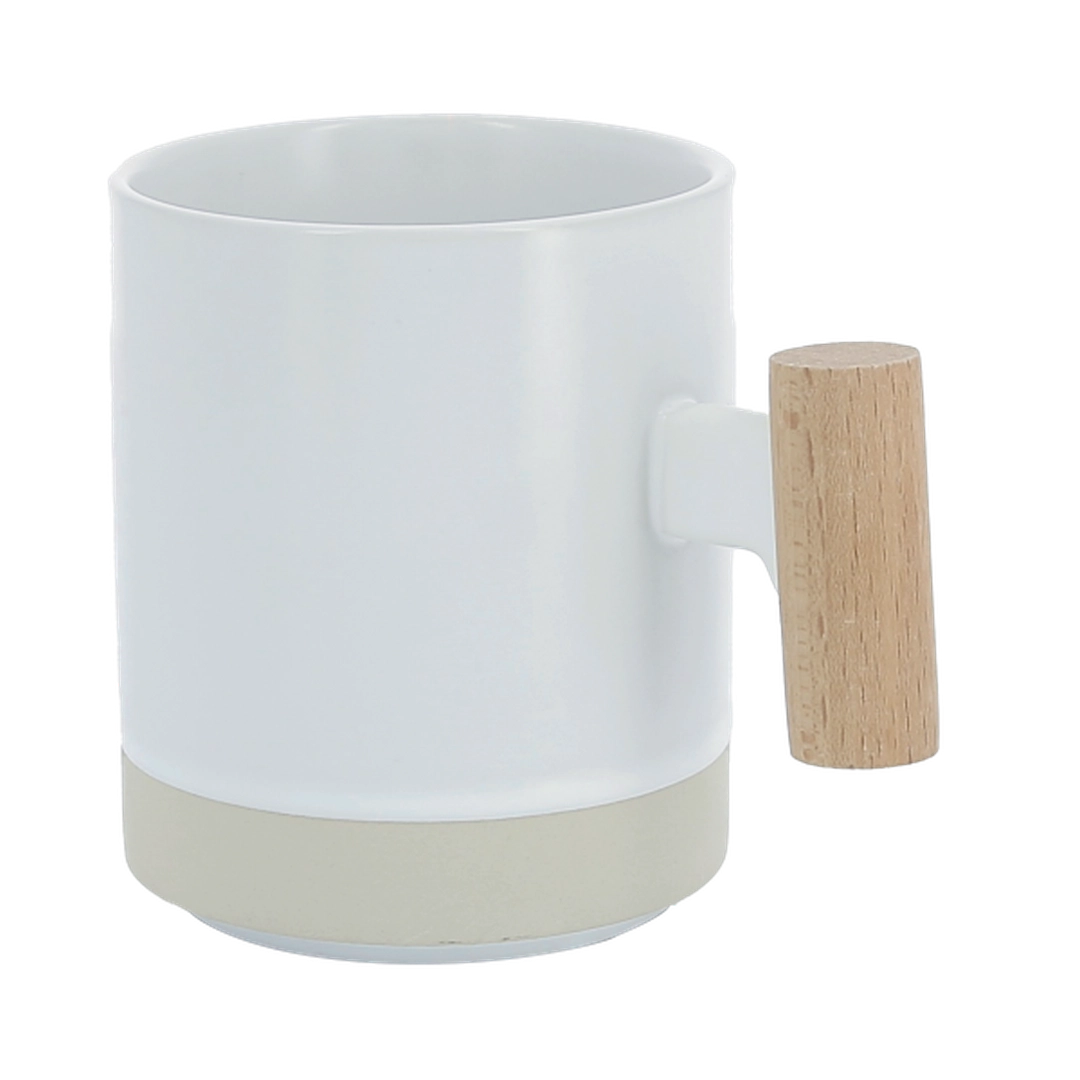 Mug céramique 330 ml avec bande de grès et poignée en bois