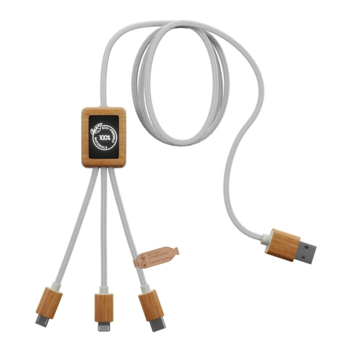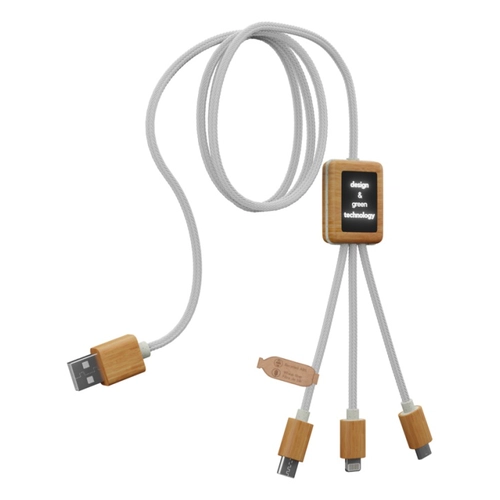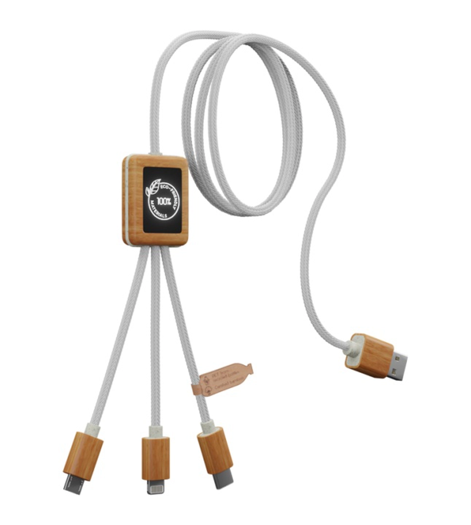 Introduisant notre solution de charge avancée : le Multicâble à Charge Rapide 2.4A Écoresponsable, personnalisable avec un double logo lumineux. Ce câble, conçu pour répondre aux besoins de connectivité modernes, est entièrement fabriqué à partir de matériaux respectueux de l'environnement, comprenant des cordons en PET recyclé, du bambou, des fibres de blé, et de l'ABS recyclé, soulignant notre engagement envers la durabilité.
