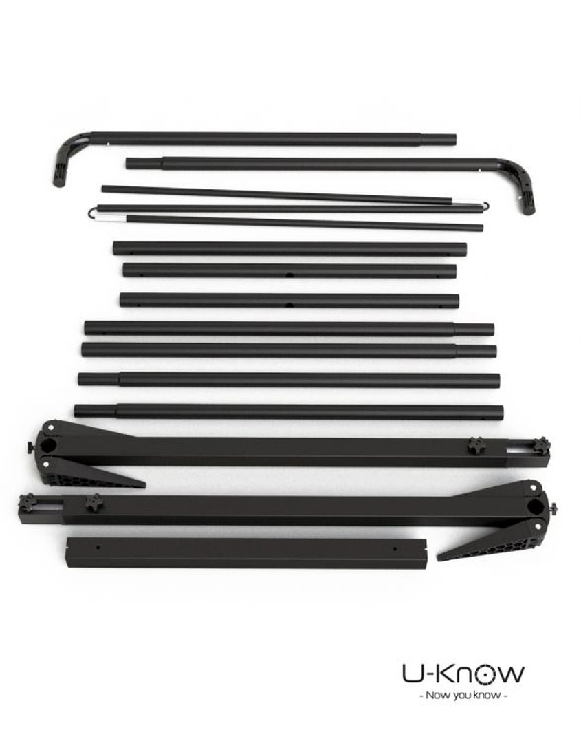 Ce photocall ou mur d'images en aluminium noir offre un rendu de grande qualité. Elle allie les atouts d’une structure aluminium et la facilité d’utilisation de l’enrouleur. Son avantage principal réside dans la possibilité d’habiller la structure en impression recto seul ou recto/verso. La housse (chaussette) recouvre la structure en aluminium. Le stand s’installe en 2 minutes et se range facilement dans le sac de transport fourni. Son poids léger en fait une structure facilement transportable. Utilisation intérieure exclusivement.Notice de montage incluse dans le sac de transport.