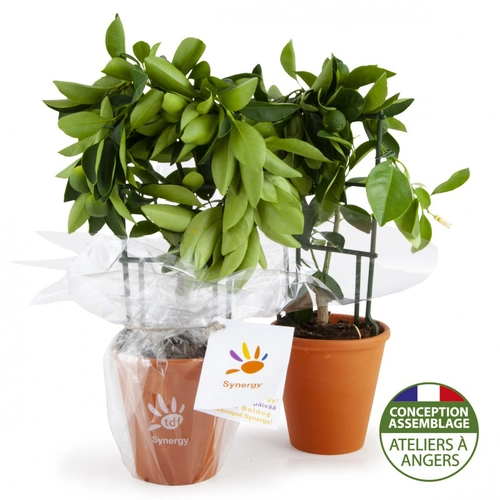 Un petit fruitier nain personnalisé à votre marque ! Un beau cadeau personnalisé pour l'hiver, le calamondin est un oranger d'appartement qui peut s'adapter à l'intérieur de nos maisons chauffées. Une belle plante d'hiver qui marquera vos clients et prospects. L'Oranger d'intérieur est disponible de Septembre à Janvier.