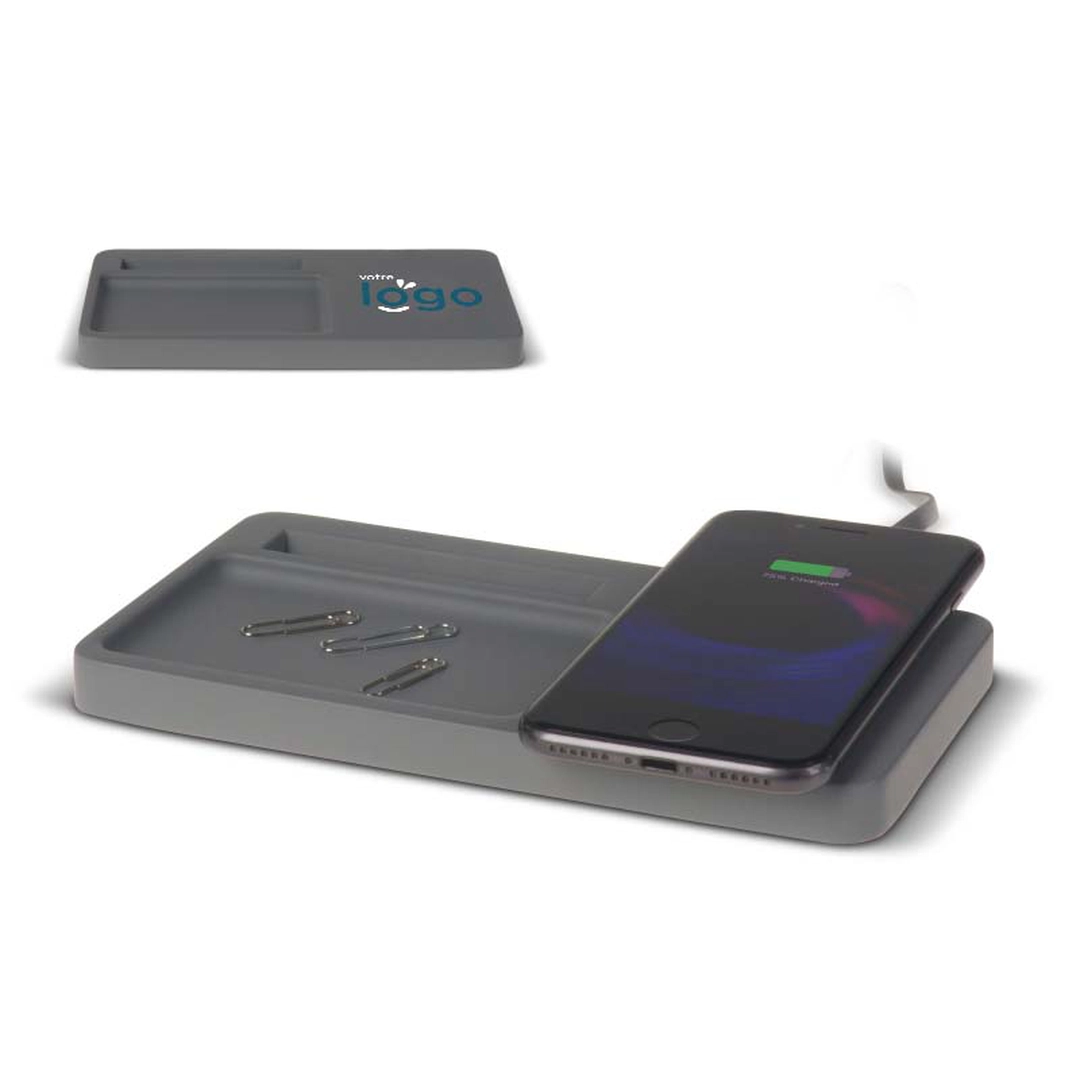 Cet organisateur de bureau dispose d'un chargeur sans fil intégré.