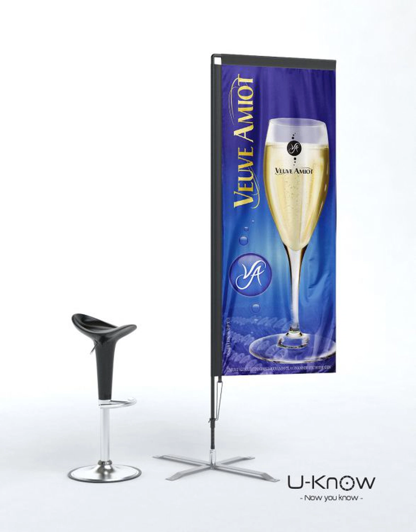 Beach flag en H ou rectangulaire de 2,10m de hauteur. Voile oriflamme en matière 100% polyester 115g/m² de taille 180(h)x70(l)cm. En impression recto seul, le visuel est visible sur l'autre côté par transparence. En impression numérique, il est possible d'imprimer en recto/verso ; une feuille occultante insérée entre les deux côtés permet d'avoir une meilleure lisibilité. Le fourreau noir de la voile est renforcé et fabriqué dans un polyester Oxford 300 D. Le mât est en fibre de carbone (très résistant). Les mâts se fixent sur tous les pieds de la même manière. L'axe de rotation présent sur les pieds pivote à 360°. Les voiles se tendent sur tous les mâts grâce à un élastique. Utilisation intérieure et extérieure. Garanti pour un vent inférieur à 70 km/h.