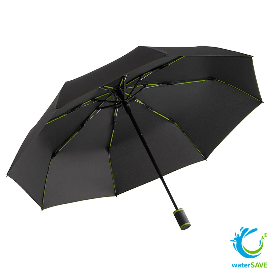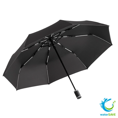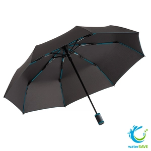 Sa toile waterSAVE® par FARE. Composée de polyester pongé OEKO-TEX issu à 100% de bouteilles PET recyclées, elle est teinte via un procédé qui économise près de 6L d'eau par parapluie, tout en réduisant l'énergie nécessaire et la production de déchets.