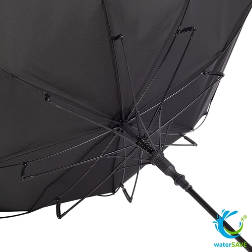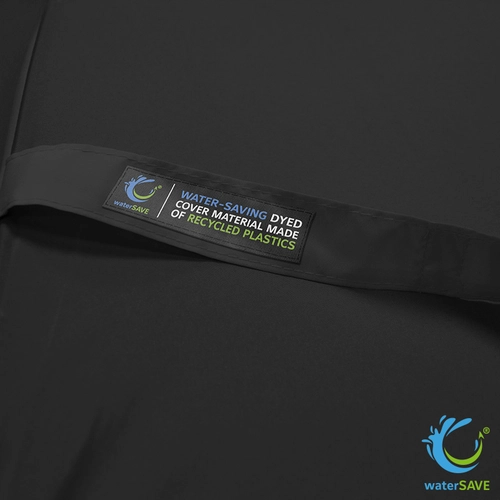 Conçu pour résister aux conditions météorologiques les plus difficiles, ce parapluie intègre 8 baleines en fibre de verre et un mât en acier, garantissant une résistance exceptionnelle au vent. La toile, faite de PET 100% recyclé et certifiée OEKO-TEX, est produite en utilisant la technologie Watersave®, réduisant significativement la consommation d'eau, l'énergie et les déchets dans sa fabrication.