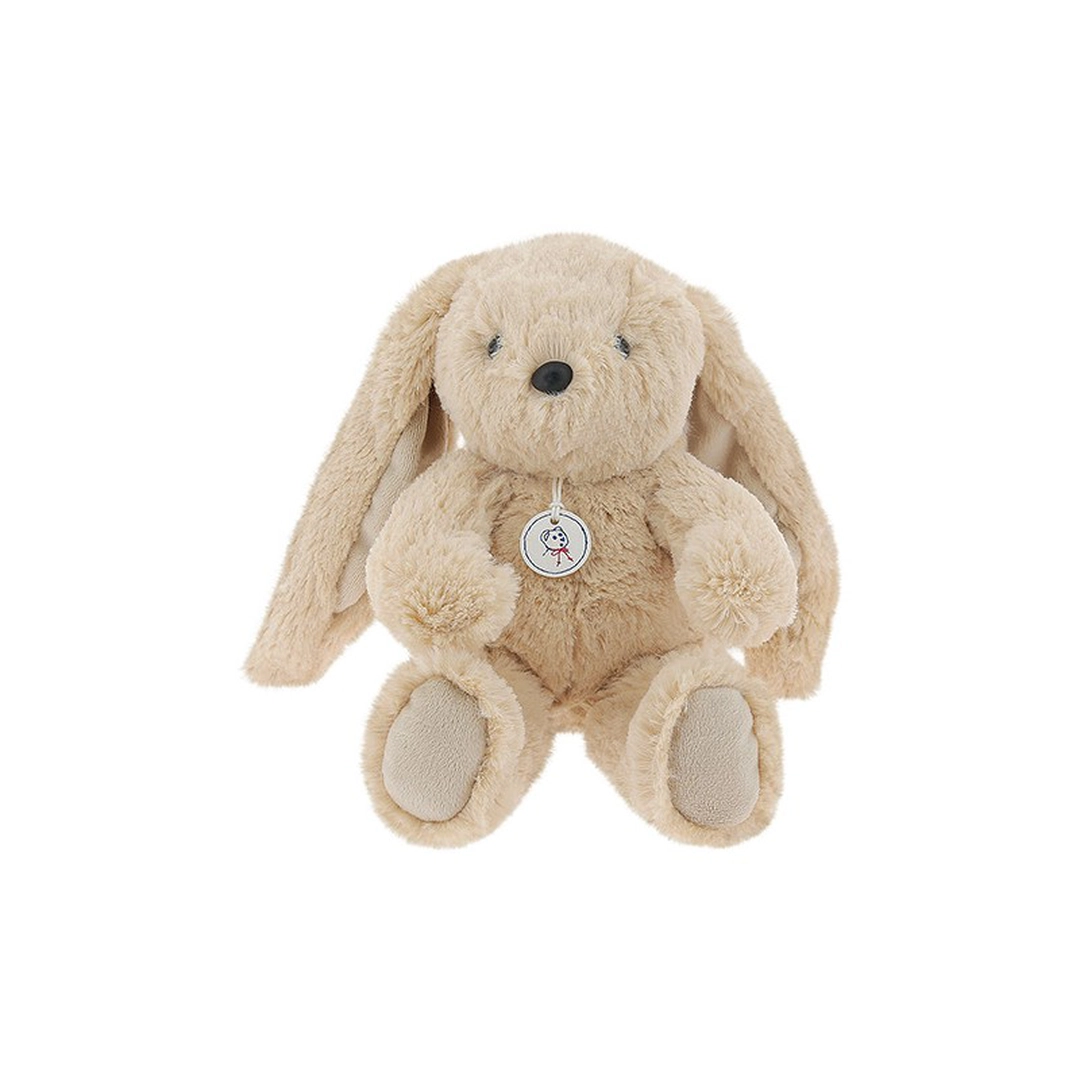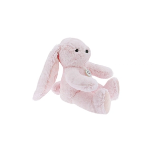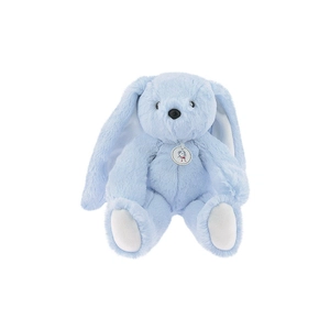 Petit lapin tout juste échappé de son terrier et que l’on retrouve assissur son derrière laissant apparaître le pompon de sa petite queue en boule. Ses longues oreilles qui entourent sa tête toute ronde et mutine sont pour une peluche, ce que l’on caresse sans hésiter.