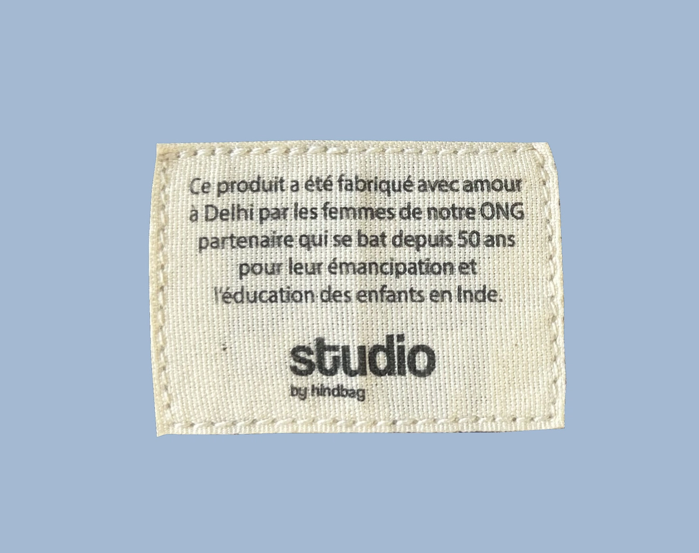 Fabriquée avec soin et dévouement par une ONG indienne, notre pochette est le résultat d'une collaboration visant l'émancipation des femmes. Chaque achat soutient une fabrication responsable à Delhi, promouvant l'emploi équitable pour les femmes et garantissant l'éducation de leurs enfants. L'étiquette intérieure cousue vous dévoile l'histoire du projet social soutenu.