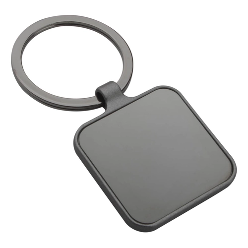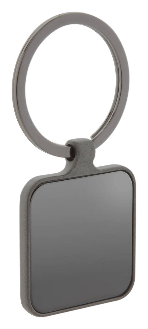 Porte-clés carré en métal avec plaques brillantes sur les deux côtés.