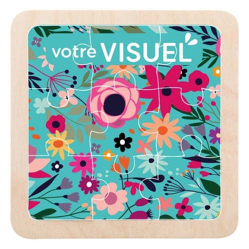 Puzzle en plastique de 9 pcs. Marquage possible sur le support en bois de bouleau laminé.