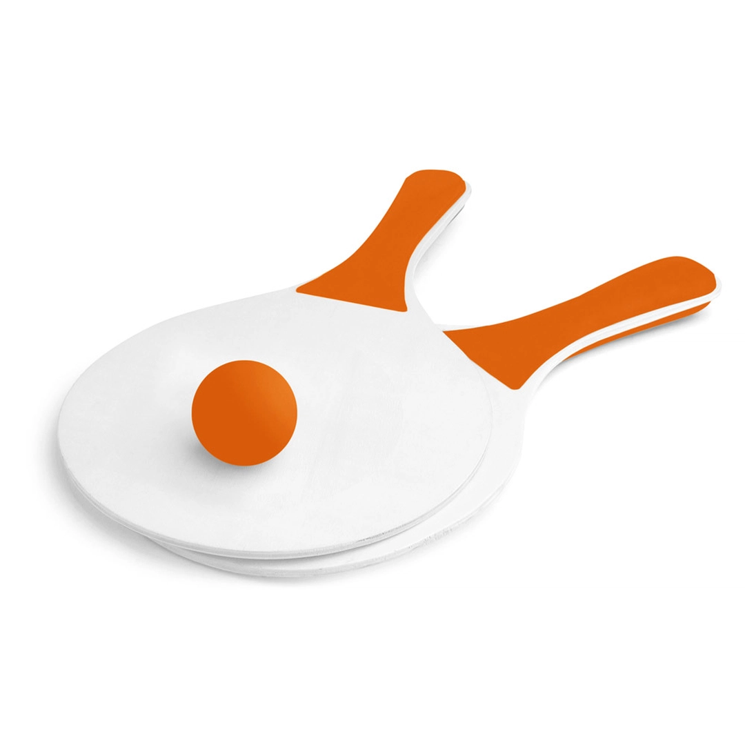 Raquettes de plage en MDF avec balle incluse. Poignées et boule colorées.