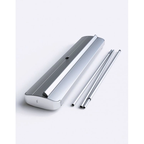 Avec son revêtement noir mat, son pourtour aluminium et sa courbe futuriste, l'enrouleur vous envoie un vent de fraicheur sur des rollups victimes de leur succès. Tout fonctionne comme un rollup classique : le montage de l’affiche, la fixation de la baguette. La seule différence est que vous ferez sensation en le sortant de son sac de transport (inclus) renforcé avec de des renforts en EVA. Moins de risques donc pendant le transport. Affiche personnalisée en bâche PVC 440g/m² norme anti-feu européenne B1. Pas de pied rétractable mais le poids et l’envergure de la structure garantissent sa stabilité.
