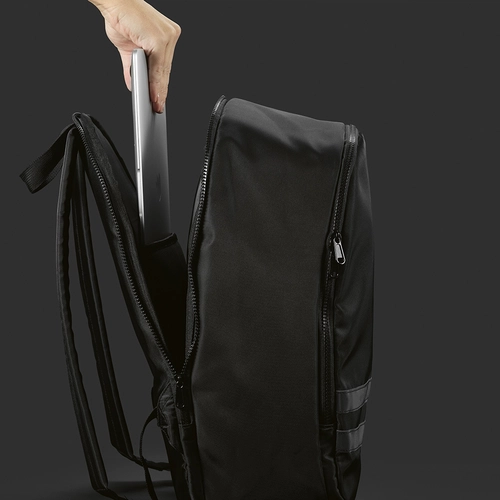 Sac à dos 18l en RPET avec compartiment pour PC - deux bandes noires réfléchissantes