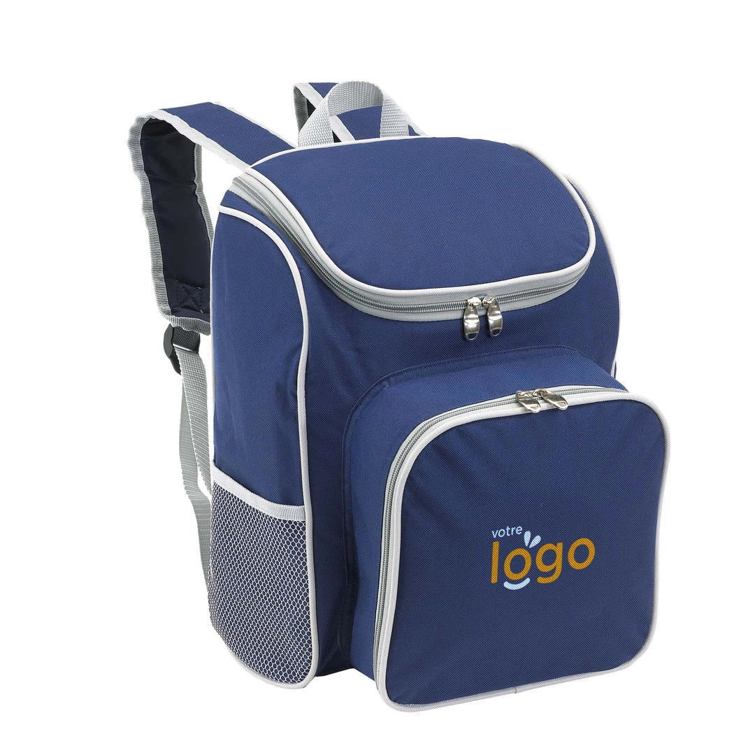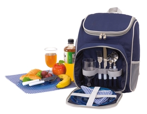 Sac de pique-nique OUTSIDE pour 2 personnes : comprend un compartiment principal isotherme avec fermeture éclair, une poche frontal à fermeture éclair avec couverts (manches en PVC), 2 assiettes et 2 verres en PVC, 2 serviettes, 2 filets extérieurs, poignée et bandoulière renforcée.