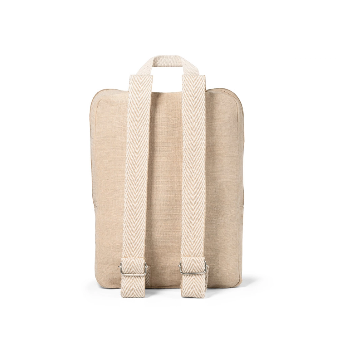 Sac à dos en juco (275 g/m) avec un compartiment principal et une poche frontale zippée.