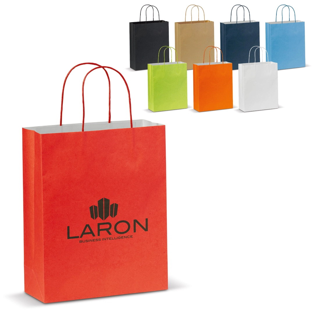 Le sac en papier Eco vous intéresse pour en faire un sac cadeau tout en communiquant sur votre entreprise ? Ce sac est celui qu'il vous faut ! Vous saurez apprécier son format de taille moyenne de dimension 24 cm par 30 cm et son soufflet de 10 cm, idéal pour offrir. Nous vous proposons ce sac éco-responsable en 8 coloris, de quoi trouver celui qui se rapprochera au plus près de votre charte graphique d'entreprise.