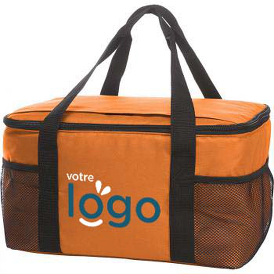 Ce sac isotherme personnalisé à votre logo à une capacité de 18 litres, il dispose de poches filets latérales et d'une pochette sur le dessus. Vous remarquez ses anses noires qui s'adapterons naturellement à la couleur du sac que vous choisirez parmi les 7 coloris au choix !