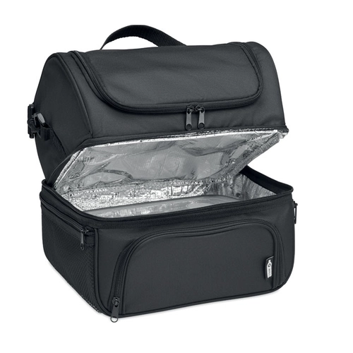 Le sac isotherme en RPET 600D comprend une boîte à lunch réutilisable en PP d'une contenance de 1900 ml. Restez en bonne santé et apportez un déjeuner fait maison au travail ou apportez des boissons au parc ou à la plage pour un après-midi de détente. Il y a 2 compartiments différents pour stocker séparément les aliments ou les boissons chaudes et froides. Portez le sac par la bandoulière réglable et détachable pour plus de confort. Doublure en feuille d'aluminium de 2 mm.
