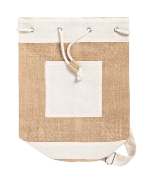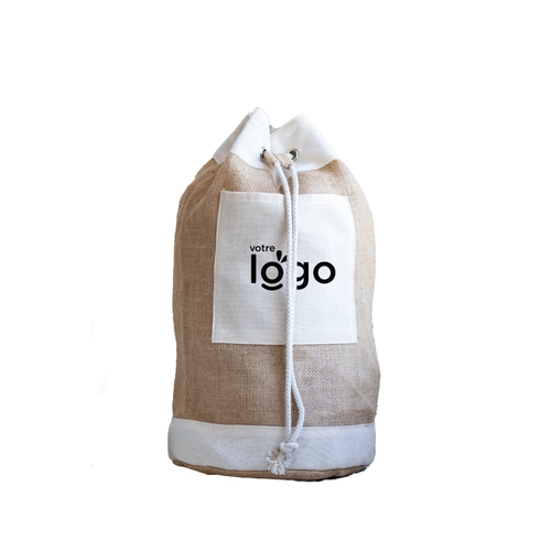 Sac marin en jute avec poche frontale en coton et fermeture avec un cordon.