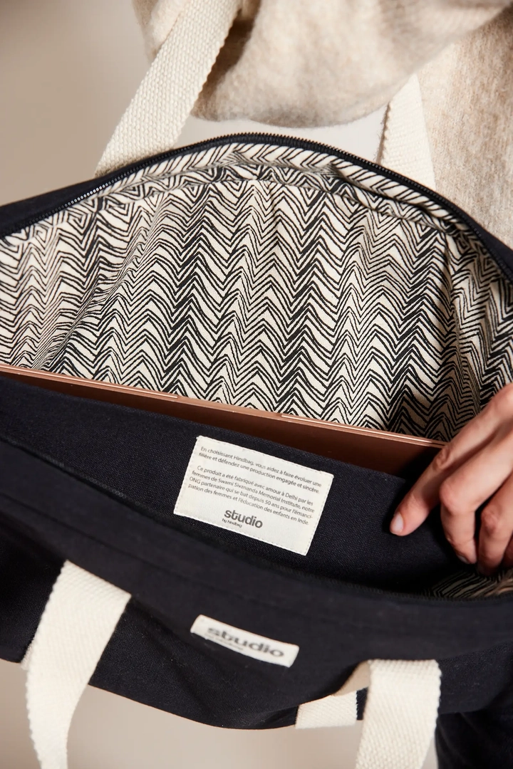 Produit de manière artisanale et éthique par une ONG indienne, chaque sac porte en lui une histoire de soutien et d'émancipation des femmes. Avec une fabrication responsable à Delhi, l'achat de ce sac contribue à des projets sociaux visant l'émancipation féminine en Inde, offrant formation et rémunération équitable aux femmes impliquées. L'étiquette intérieure cousue vous racontera l'histoire et l'impact de votre achat.