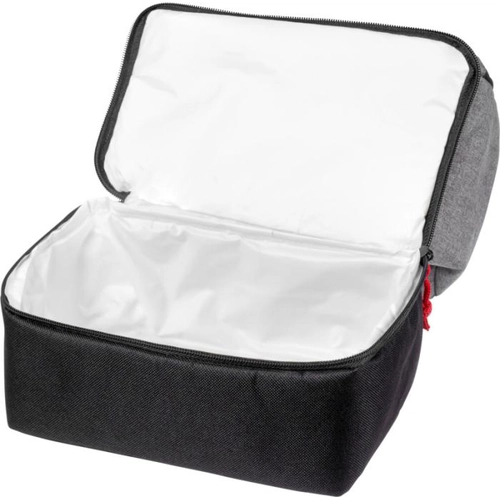 Ce sac-repas isotherme double comprend deux compartiments zippés séparés, une poignée de transport pratique et un motif de couleur tendance avec languette de zip contrastante.