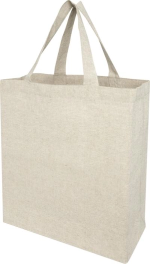 Ce sac shopping est solide et durable grâce au matériau en sergé de coton recyclé de 150 g/m². Longueur de la poignée : 18,5 cm. Le sac est fabriqué à partir de déchets de pré-consommation générés par les usines pendant le processus de coupe du tissu. Livré avec une planche de fond robuste. Peut supporter jusqu'à 10 kg. Il peut y avoir des variations mineures dans la couleur du produit en raison de la nature du processus de production.