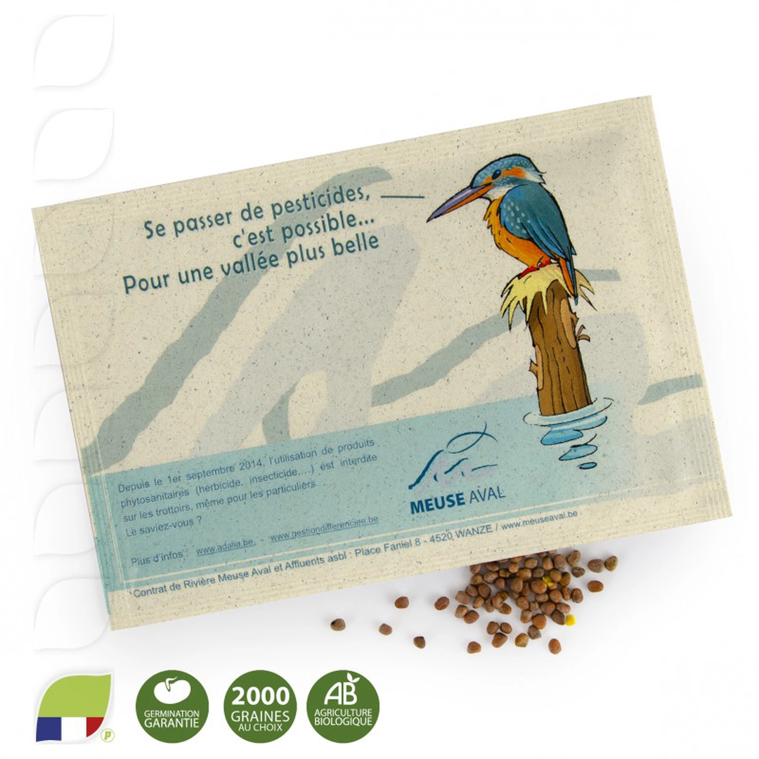 Un petit sachet qui a tout d'un grand ! Réalisé à base de fibres naturelles de tomates, il sera l'élément clé de vos campagnes écolos ! Marquez la différence avec ce sachet de graine écologique à base de fibres de tomates contenant des graines à semer. Ce sachet de graines est un beau message de croissance et de vie avec une variété de graines au choix (marguerite, coquelicot, tomate cerise, basilic bio ou non-bio, gazon, épicéa ... ).