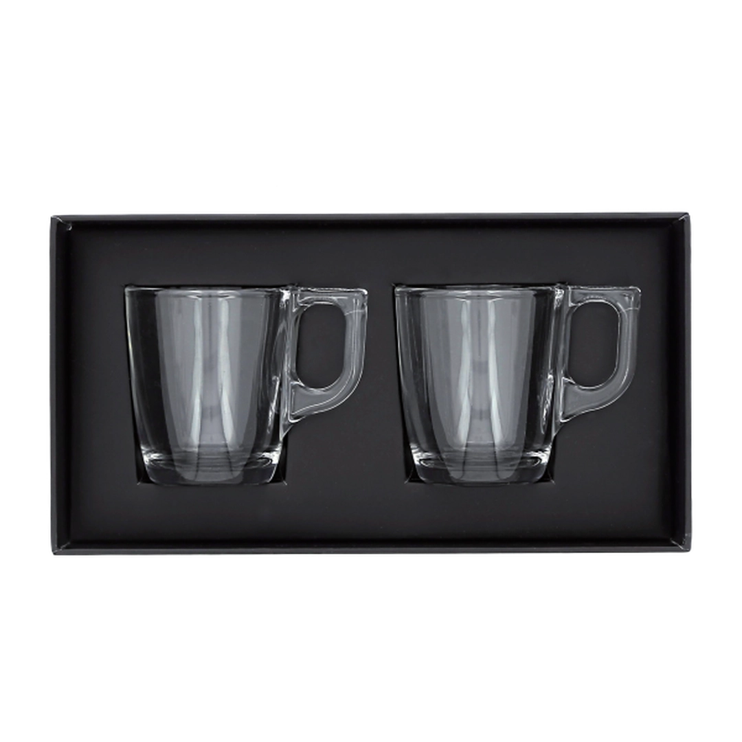 Présentées dans une boîte en carton noir de 1200 gr./m², ces tasses ne sont pas seulement pratiques mais aussi élégantes, rendant chaque pause café ou expresso un moment raffiné. Leur design transparent et intemporel fait de ce set un excellent choix pour tous ceux qui souhaitent allier esthétique et fonctionnalité.