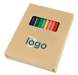 Set de coloriage COLOURFUL BOOK composé de 10 feuilles à colorier avec des motifs différents, 40 feuillets blancs, 12 crayons de couleurs taillés, dans un carton cadeau avec fenêtre.