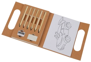 Composé de 6 crayons de couleurs en bois naturel, d’une gomme, d’un taille-crayon et de 30 pages avec différents motifs à colorier, ce lot est complet et permettra de libérer la créativité de votre cible. Rangé dans une mallette en carton, ce set est également facilement transportable, critère idéal pour un goodies destiné aux enfants, n’est-ce pas ?