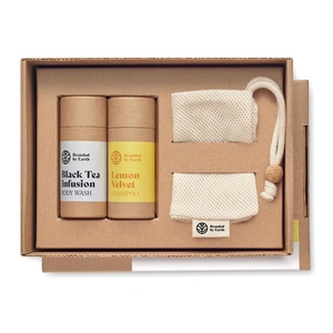 Set unisexe comprenant du gel douche vegan, un shampoing et un gant en coton biologique. Emballage dans un tube. Boîte en papier recyclé. Faites plaisir à quelqu'un de spécial ou à vous-même avec ce cadeau attentionné. Prenez soin de votre peau et de vos cheveux avec ces articles de bien-être naturels. Tous les articles de cet ensemble sont fabriqués à partir de matériaux naturels et biologiques, ce qui en fait une option durable qui n'a que peu ou pas d'impact sur l'environnement.