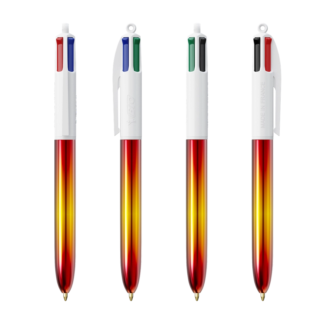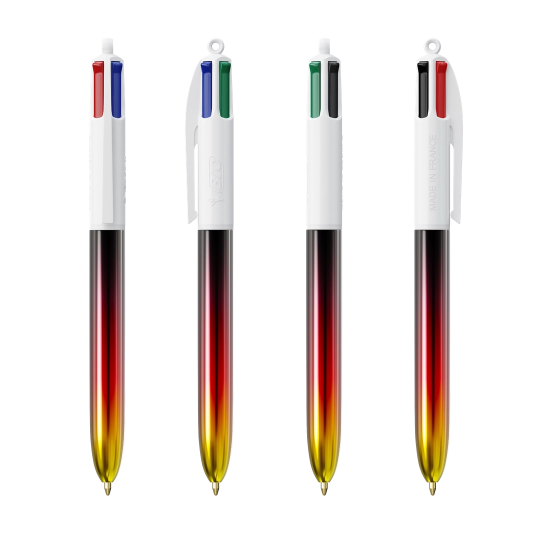 Découvrez la dernière innovation de Pantacom : le stylo BIC® 4 Couleurs® de la collection Flags, maintenant disponible avec une option de lanyard personnalisable. Ce stylo emblématique séduit par sa finition métallisée brillante et dégradée, offrant une nouvelle dimension chromatique qui permet de mélanger harmonieusement différentes teintes au sein d'un même corps. Vivez une expérience unique grâce à cet univers de couleurs !