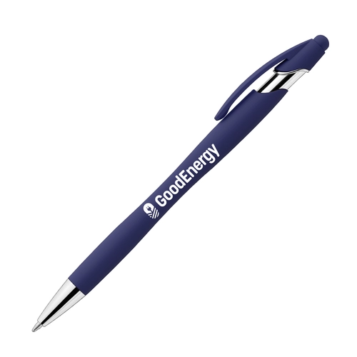 Avec des couleurs éclatantes qui attirent l'œil et des accents chromés qui ajoutent une touche d'élégance, ce stylo est conçu pour mettre votre marque sous les projecteurs. Son ergonomie est pensée pour le confort : un revêtement en caoutchouc souple enveloppe le corps du stylo, offrant une sensation satinée unique à chaque mot écrit.
