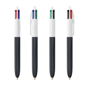 Toujours aussi pratique, il réunit les 4 encres classiques (bleu, noir, rouge, vert) avec une qualité d’écriture fluide et constante grâce à sa bille en carbure de tungstène. Le stylo est désormais plus durable avec 13 % de plastique en moins dans sa partie supérieure.