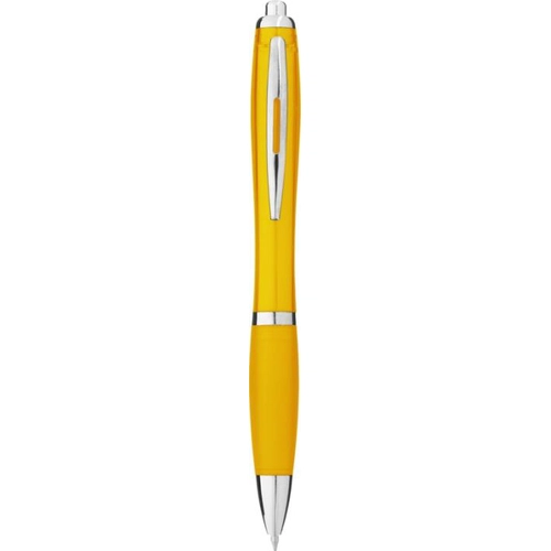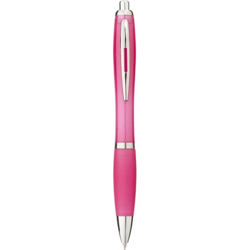Stylo à bille corps couleur/grip couleur avec bouton poussoir.