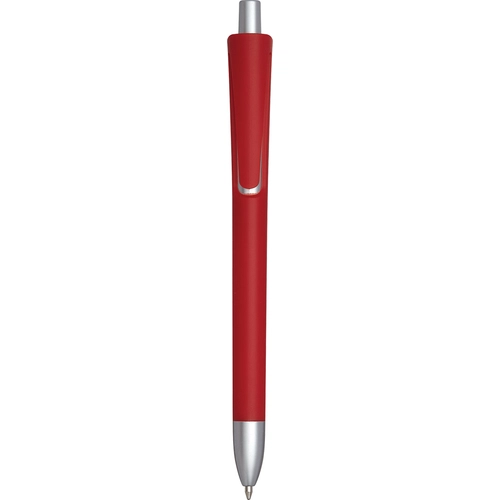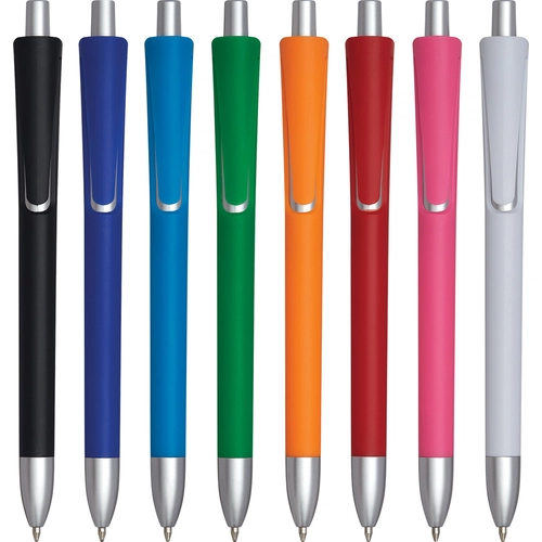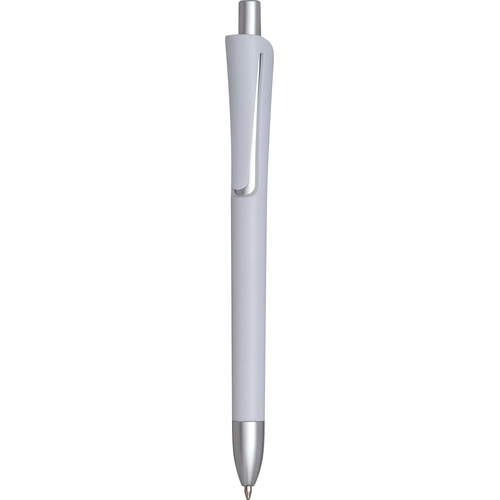 Découvrez notre stylo bille en plastique personnalisable, conçu pour allier praticité et élégance. Ce stylo est doté d'un bouton-poussoir facilitant son utilisation, avec un corps en plastique robuste et des décorations argentées sous le clip et au niveau de la pointe.