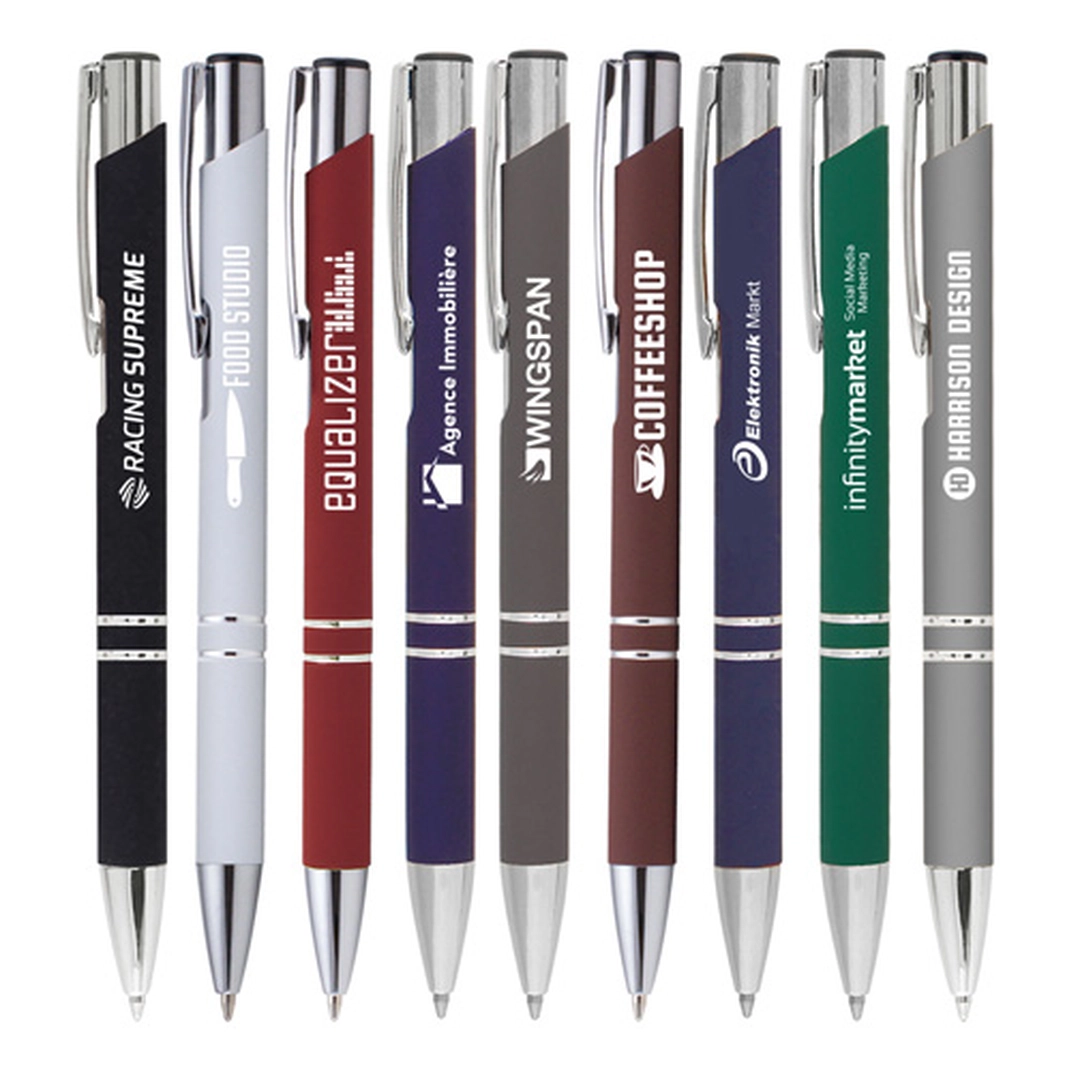 Le stylo CROSBY softy est notre référence dans la gamme écriture ayant le plus de succès. Ce stylo promotionnel possède un corps en aluminium en caoutchouc et une finition chromée brillante. Son touché et sa gamme fantastique de 18 couleurs en font un favori. Le stylo publicitaire est l'un des produits le plus impactant en matière de communication. Personnalisez le stylo CROSBY softy en gravure laser ou avec notre technique de marquage ColourJet pour un rendu haut en couleur !