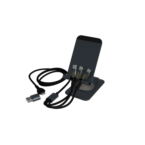 Explorez notre support de téléphone en métal innovant, offrant une flexibilité totale avec une rotation à 360°, accompagné d'un multicâble de charge rapide 5-en-1 pour une efficacité maximale. Ce câble polyvalent comprend deux sorties (Type-C/USB) et supporte une charge rapide impressionnante de 60W & 3A, équipé d'embouts transparents qui s'illuminent pour indiquer l'activation de la charge. Conçu dans une finition élégante de couleur gris sidéral, ce support et son câble permettent jusqu'à trois chargements simultanés, offrant une solution de charge complète pour tous vos appareils.